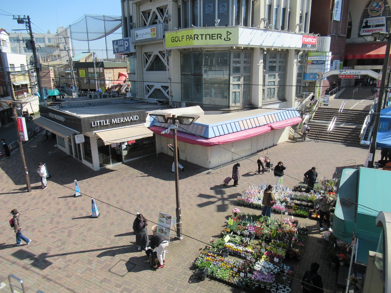1階の広場.リトルマーメードのパン屋さんはすでに閉店.その隣にお菓子屋さんがあったが,これも閉店している.花屋さんは営業中.