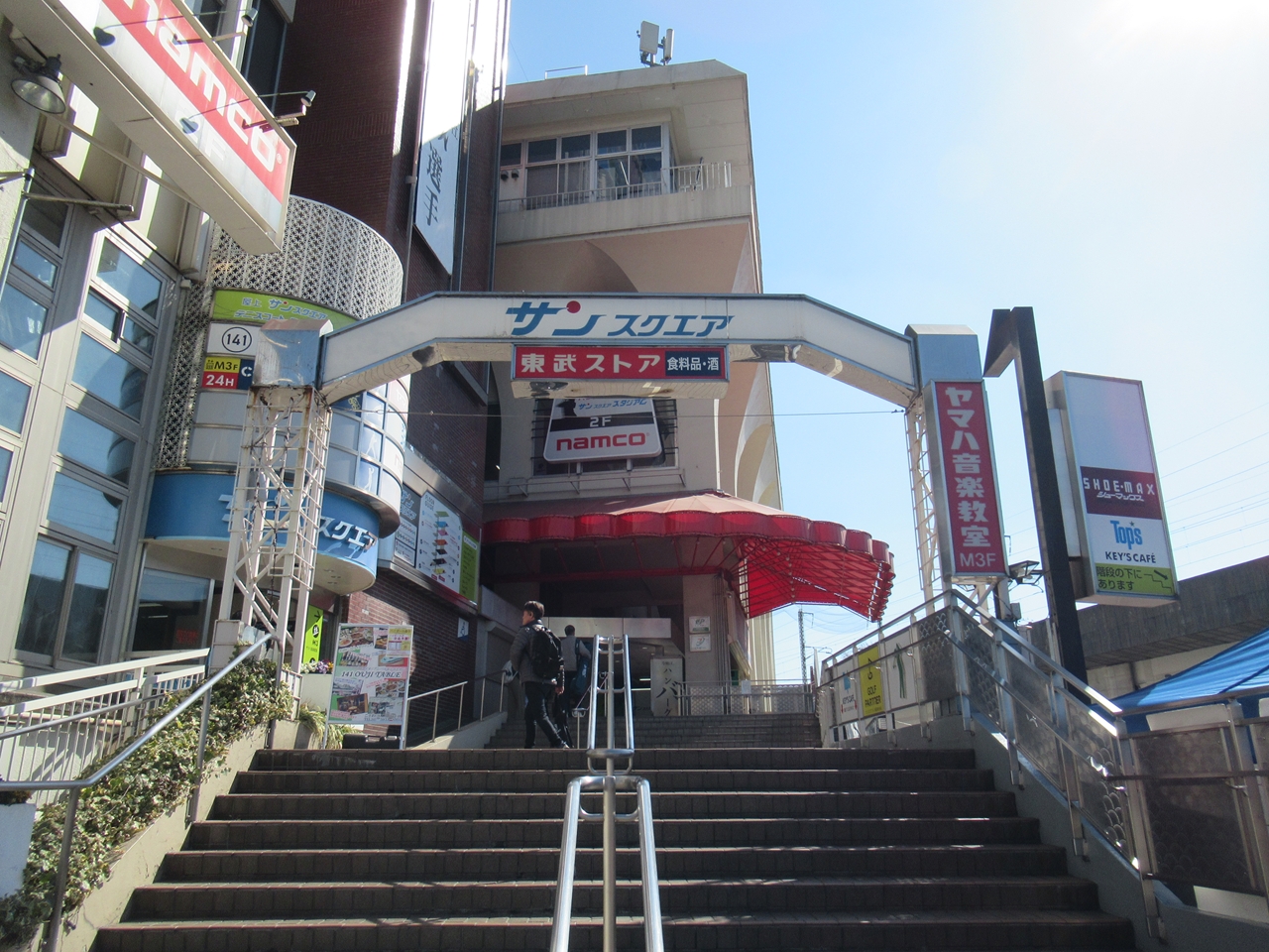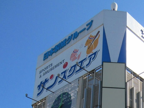 サンスクエアは王子駅前にあり,ボウリング場やテニスコート、ゴルフ練習場,バッティングセンター,ゲームセンターなどのほかにも,飲食店や東武ストアなどが入居する施設である.1972(昭和49)年にオープンした.
