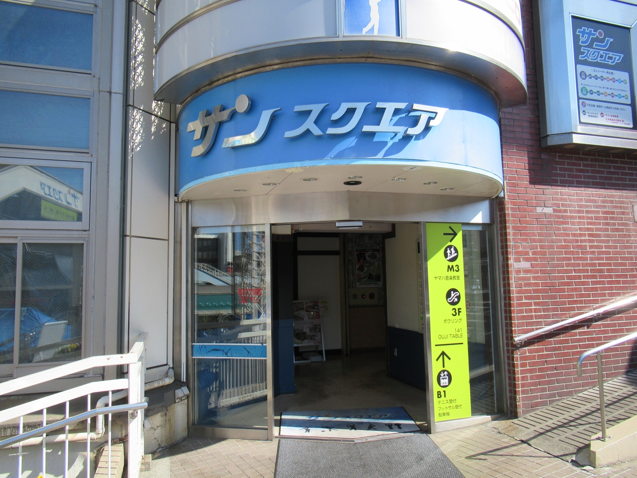 サンスクエアは,左側のタワーと右側の建物の2つからなっている.建物は3階建てとなっているのだが,中2階(M2),中3階(M3)があって,実質的には5階建てなのではないかと思うのだが,少し複雑な構造と,中を移動するのにはわかりづらい導線となっている(ヤマハの音楽教室はM3階で,行き方が奥の階段からしか行けない).