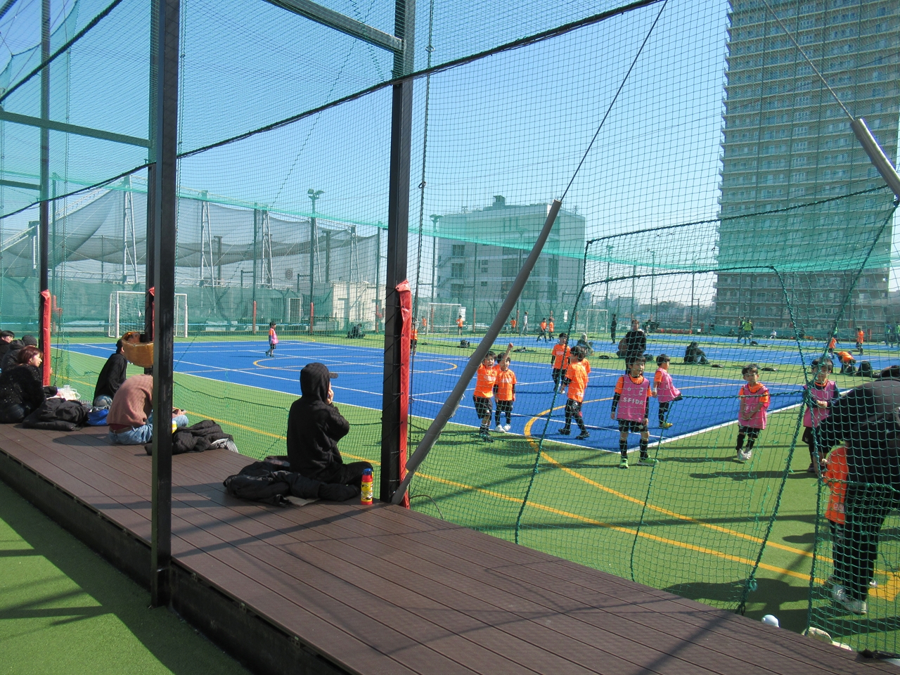 屋上では,子供たちがフットサルで汗を流していた.サンスクエアは,大人から子供まで,王子民の憩いとレジャーの場所である.